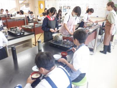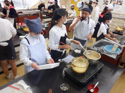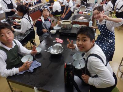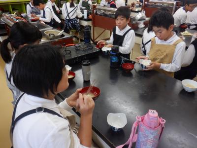 5年生が家庭科の学習で、ごはんとみそ汁の調理実習を行いました。