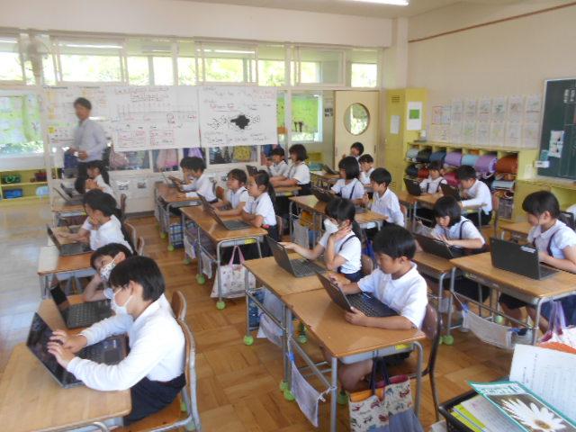 2年生は、ICTサポーターの方と一緒に「クロームブック」の使い方を学習しました。