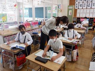 自分で文を作った後には、しっかりと手を挙げて発表したり、黒板に書いて確かめたりしていました。すっかり1年生らしくなった姿に、周りで見ている先生方も、子ども達の成長を感じているようでした。