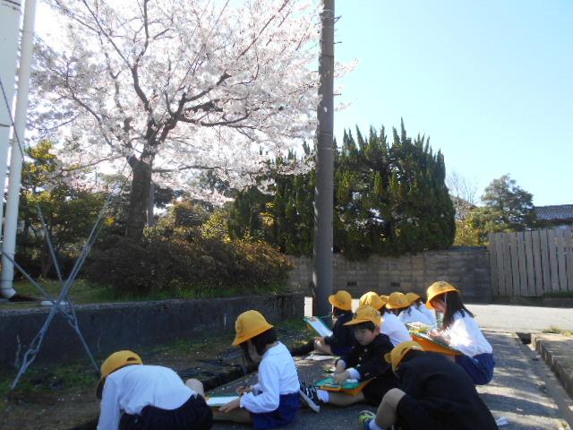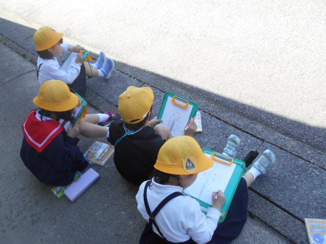 2年生は、図工の学習で、校庭などで春を感じるものを見つけてスケッチしました。