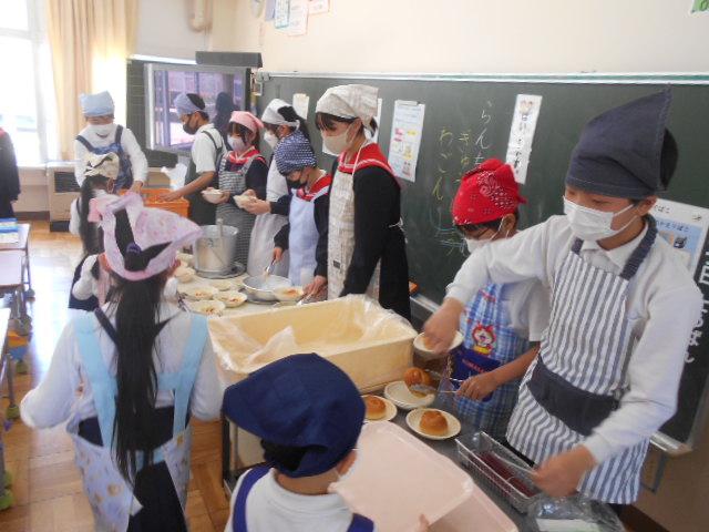 1年生は、12日(金)から給食開始です。今日は、6年生が1年生の給食の準備を手伝ってくれました。