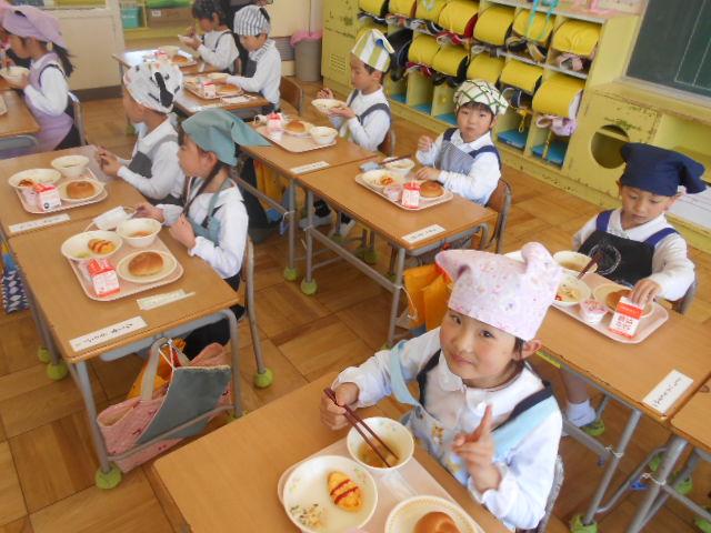 初めての給食は、「おいしいかった!」という感想がたくさん聞かれました。