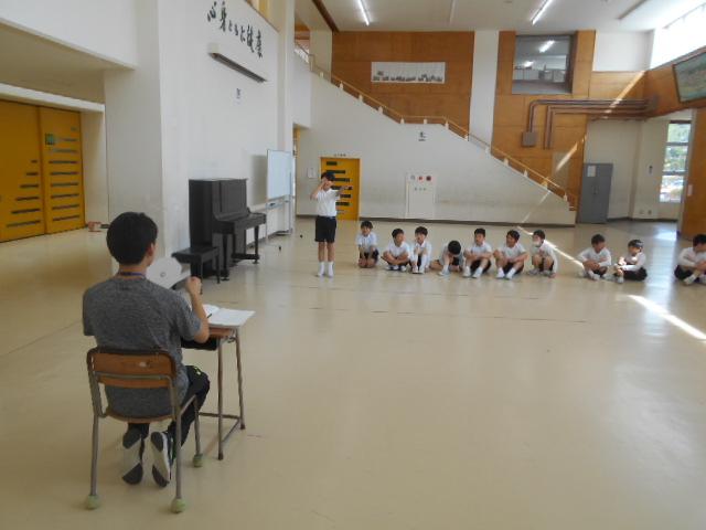 養護の越能先生による説明をしっかりと聞いて、健康診断を実施しました。