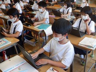 6月29日(水)3年2組の道徳の時間、クロームブックを使って、よいことと悪いことを判断する時の気持ちの揺れ具合を色で表していました。一人一人の素直な気持ちをみんなで共有することで、気持ちが揺れてもよい方法を判断して行動したいと話し合っていました。
