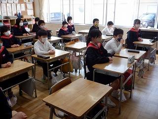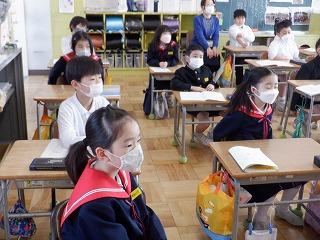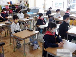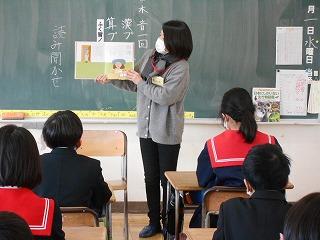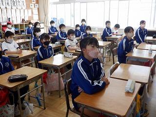 3月1日(水)図書ボランティアの皆様が、今年度最後の読み聞かせをしてくださいました。今年1年感染防止対策にご協力をいただきながら、最後まで継続してくださったことに感謝しながら、全校児童でお話を聞きました。春の日差しとボランティアさんの優しい語りに、温かい空気が教室を包んでいました。