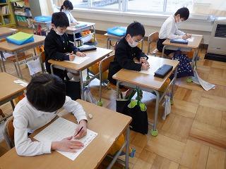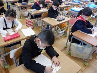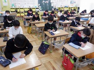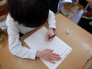 2月の「たし算・ひき算校長先生検定」に見事合格した1年生の子ども達は、今月さらにパワーアップしようと、校長先生テストにチャレンジしています。3分間で20問の計算問題に答えるので、どの子も集中して取り組んでいました。計算力をしっかり高めて、2年生に進級してくださいね!