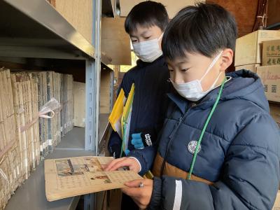 2月28日(火)3年生が、社会科の学習で「吉倉収蔵庫」を見学しました。吉倉収蔵庫には、津幡町から集められた生産や生活のための道具を中心とした各種資料がたくさん保存されていました。子ども達は、普段自分たちが使っている生活用品と比べながら見学し、昔の人々の生活について考え、学習をより深めていました。