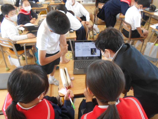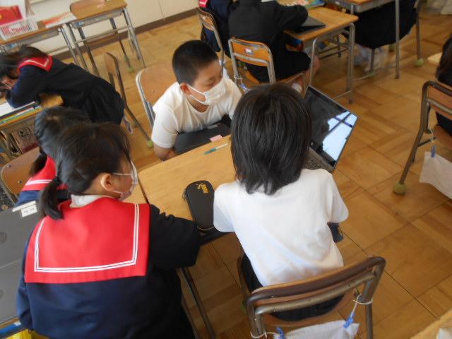 友だちの作ったスライドを、グループのみんなで目線をそろえて見ている姿が、とても素敵でした。