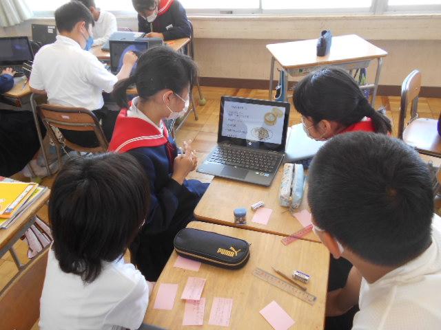5月10日(火)5年2組の社会の学習では、世界の国々を調べ、グループで交流しました。子ども達は、自分が調べた国についてクロームブックでスライドを作り、発表しました。