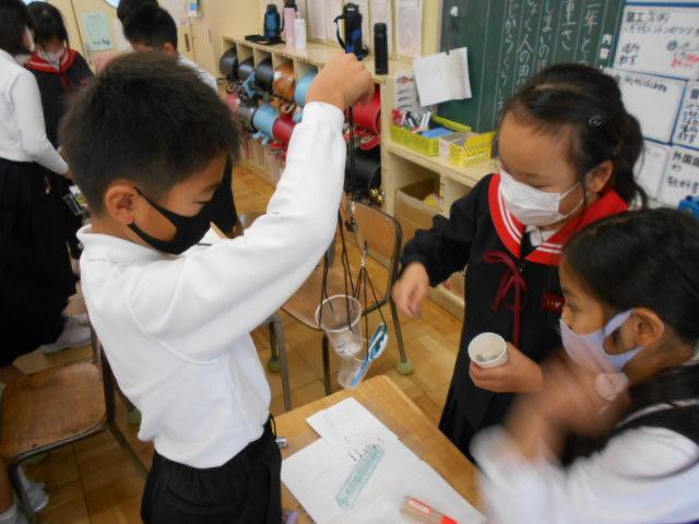 予想を立ててから活動したことで、ピッタリ合った!予想とは違って意外と重かった!軽かった!など、自分の量感を確かめながら学んでいました。