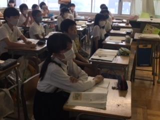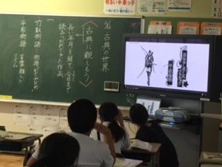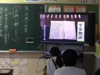 14日(月)5年1組の子ども達が、国語の時間に「平家物語」の朗読音声を聞きながら、古典の学習をしていました。この後、教科書を使って「竹取物語」や「徒然草」などを音読し、昔の人のものの見方や感じ方について学んでいくようです。日本語のよさや美しさを感じ、日常生活でも美しい日本語を使っていきたいですね。