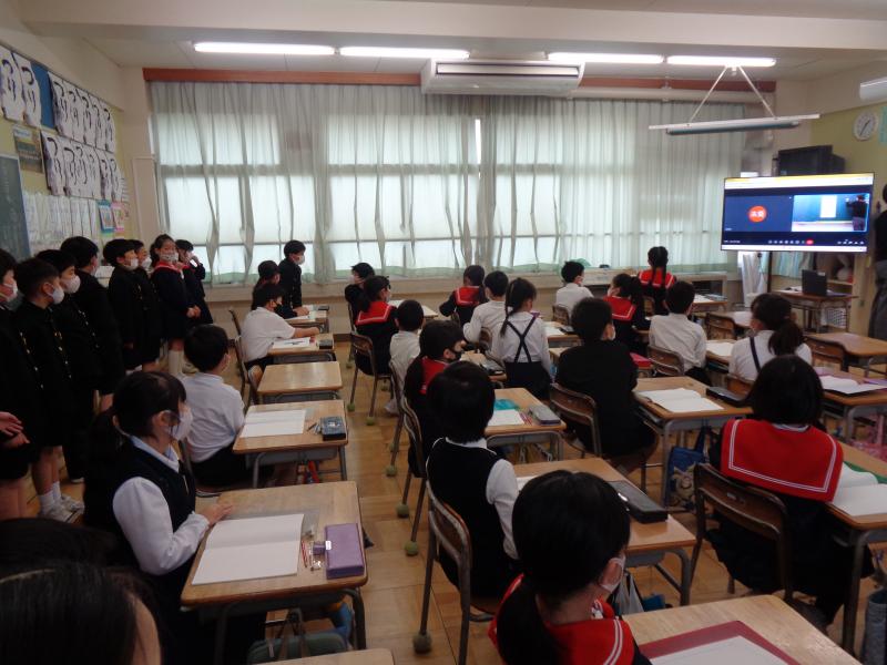教室に戻ってからの振り返りでは、「授業の準備が全員できていて、ぼくたちも見習いたいです。」「みんなに聞こえる声で発表していました。」「全員、反応の声が揃っていて良かったです。」と、次の学年に繋がる目標の姿を発表していました。