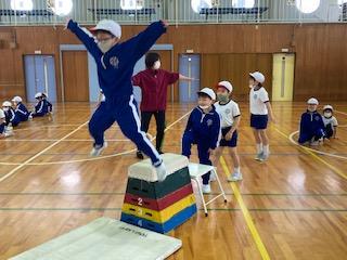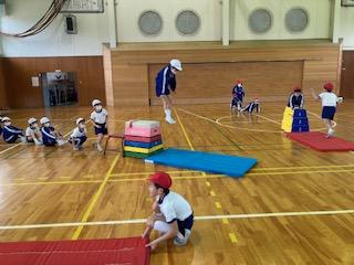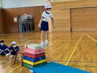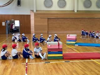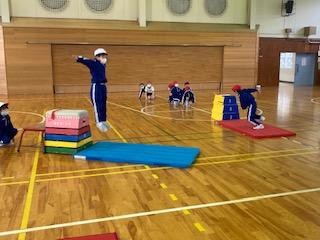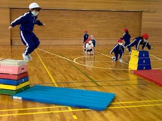 子ども達は、いろんな跳び方や歩き方に挑戦して、運動を楽しんでいました。