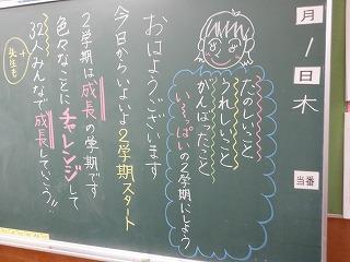 2学期スタート 投稿日時 : 2022/09/01 chuuje 9月1日(木)今日から2学期がスタートしました。各クラスの担任は、それぞれ子ども達に向けて温かいメッセージを黒板に描き、子ども達を出迎えました。 {{options.likeCount}} {{options.likeCount}}