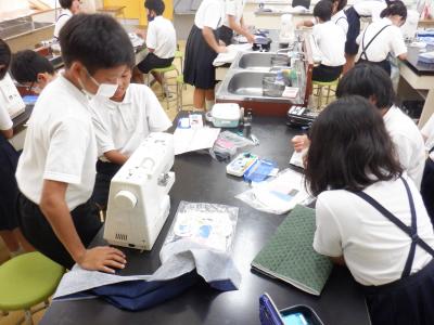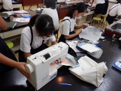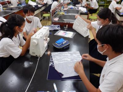 6年生では、家庭科でナップザックづくりを始めました。