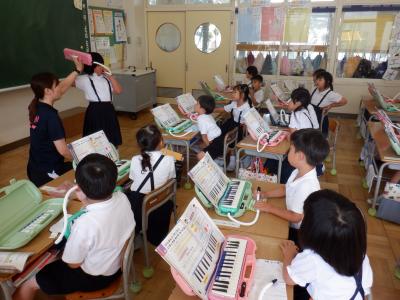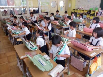 1年生は、音楽の時間に鍵盤ハーモニカの練習です。