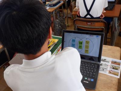 クロームブックを使って、本文から大事な言葉や文を見つけて、線を引いたり丸で囲んだりする活動もしました。