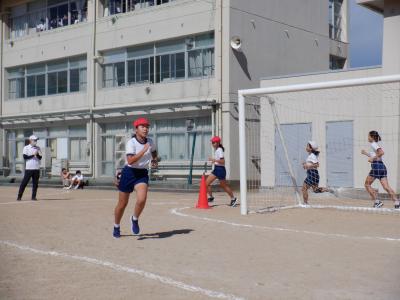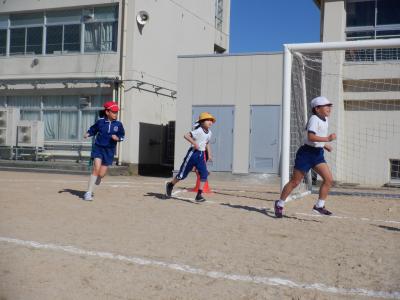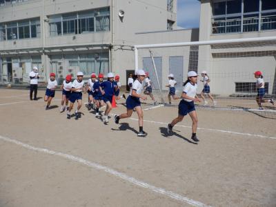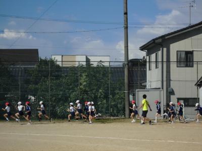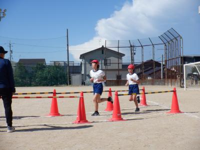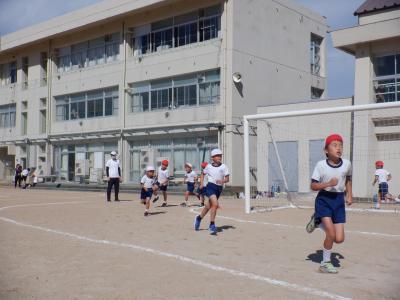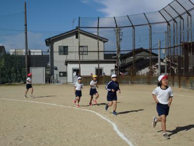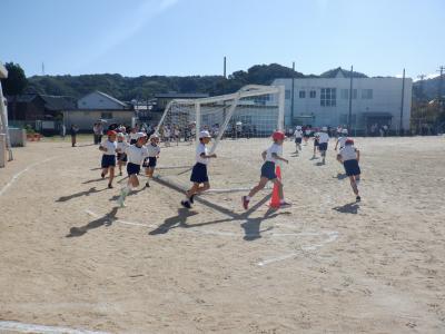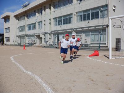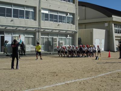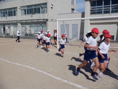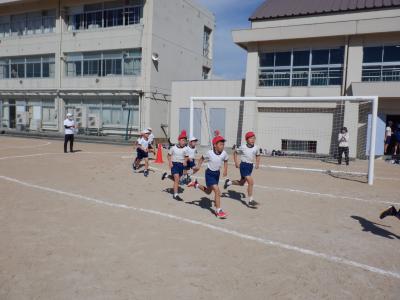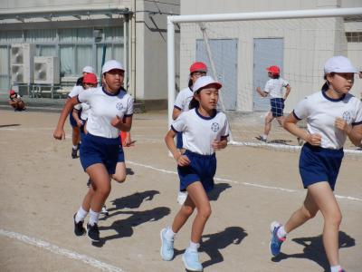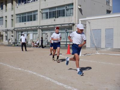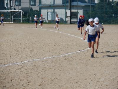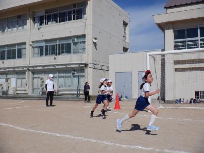 次は4年生です。一人一人がペースを考えて走り、男女とも、大きな差がつくことなく走り切りました。