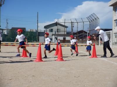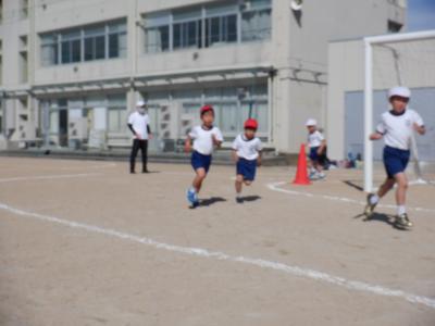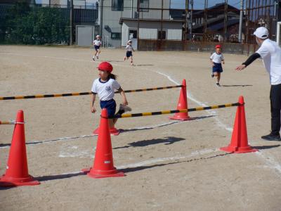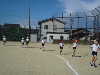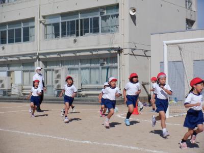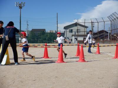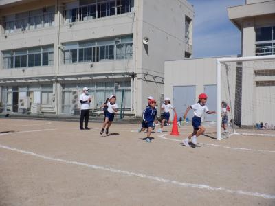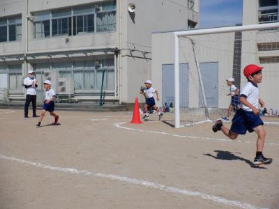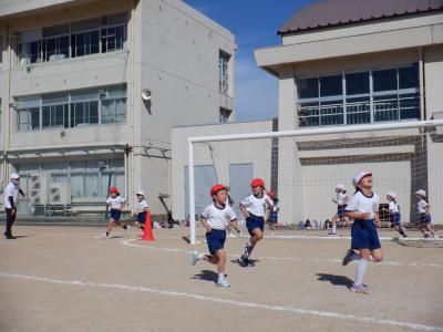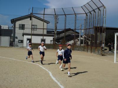 1年生は、初めてのマラソン記録会です。走る距離が短く、はじめから勢いよく走る子が何人もいました。