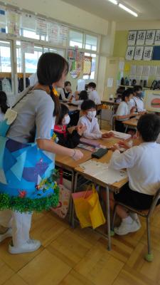 子どもたちは、習った英語やジェスチャーを工夫して、上手に伝えることができました。