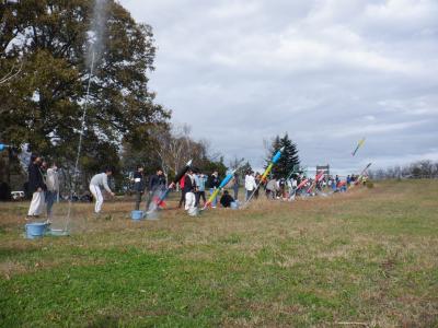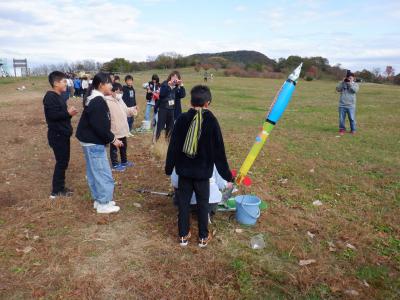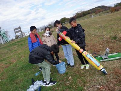 グループで協力してロケットが遠くまで飛んだときは、大きな歓声が上がりました。