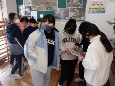 館内を歩き回りながらグループでヒントを見つけ、30問ある問題を解いていきました。