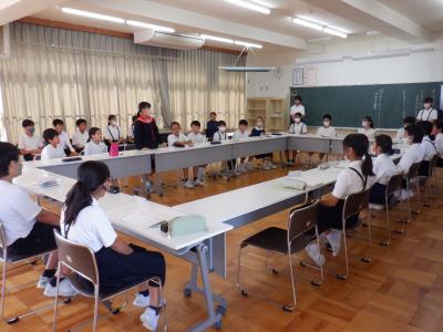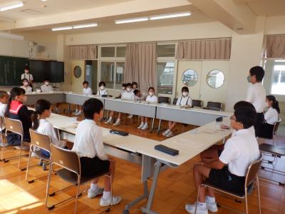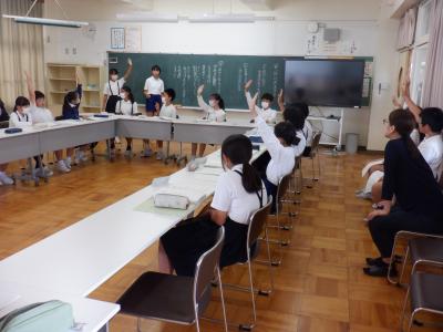 後期 代表委員会スタート 投稿日時 : 2023/10/12 chuuje 先週は、5,6年生の委員会活動が、前期から後期へとバトンタッチされました。 代表委員会も、いよいよ後期へバトンタッチです。 4年生以上の学級代表、各委員会の委員長、計画委員が集まり、後期初めての代表委員会が行われました。 自己紹介の後、早速、計画委員から「赤い羽根共同募金」の呼びかけがありました。 その後、中条小学校をもっとよくするために、課題だと思うことを話し合いました。 学校の様子をよく見て、よく考えている、とても頼もしい代表の皆さんの姿でした。 Tweet {{options.likeCount}} {{options.likeCount}}