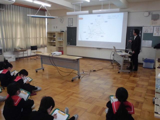 社会科「市のうつりかわり」の学習で,津幡ふるさと歴史館「れきしる」の長さんと山本さんをお招きして,津幡町のうつりかわりについてお話いただきました。