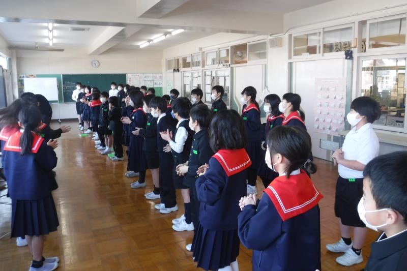4年生:卒業を祝う会に向けて 投稿日時 : 02/12 sensei 卒業を祝う会まで1週間。4年生は,実行委員会を中心に練習を積み重ねています。 今までお世話になった6年生に感謝の気持ちを込めて,自分たちの形で「ありがとう」の気持ちを伝えてほしい思います。