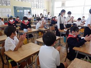 読み聞かせの後、感想を話しているクラスもありました。感謝の気持ちを込めて拍手も送っていました。