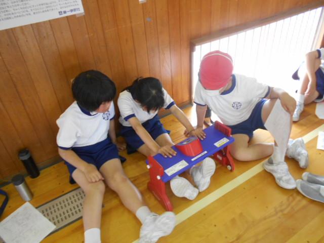 5年生の体力テスト「ソフトボール投げ」と「長座体前屈」では、1回目よりも記録を伸ばそうと気持ちを入れて取り組んでいた子ども達。真剣に挑戦している姿に、高学年として頑張る気持ちが伝わってきました。