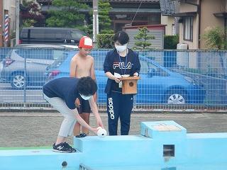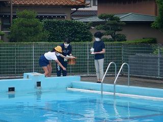 安全祈願が終わった後、6年生が早速プールに入りました。1年ぶりなので、どの子も満面の笑みで楽しんでいました。
