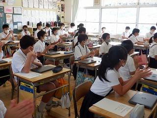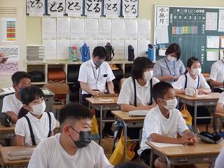 6月27日(月)1・2限目に、県と町の管理主事の訪問がありました。朝から大変な暑さの中での授業でしたが、どの学年の子ども達も、いつも通りがんばる姿を見せていました。