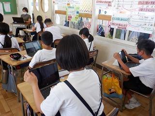 1組の様子です。クロームブックを使って、つなぎ言葉を働きごとに分類していました。