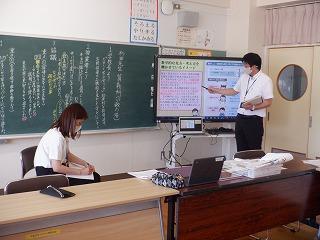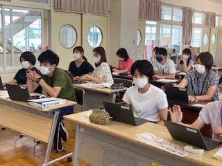 放課後の授業研究会では、指導主事から効果的な指導法について全教員で学びました。
