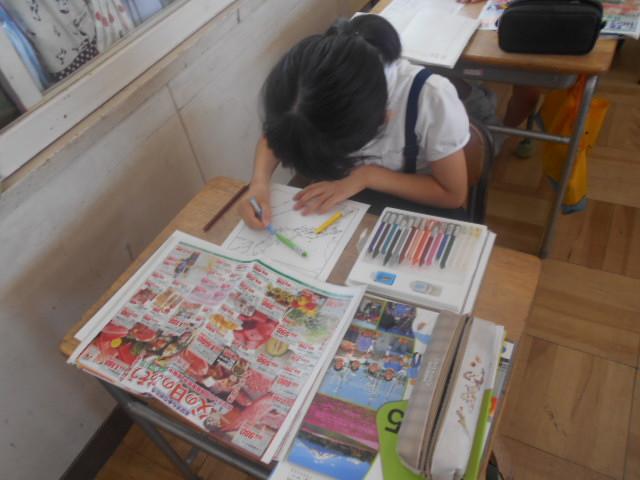 先週、5年生は、社会科の時間に、毎日食べているものがどこで作られているのかをチラシを使って調べました。