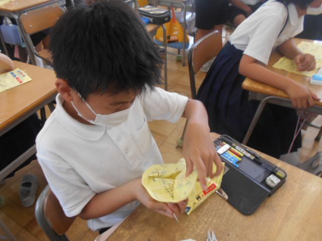 7月19日(火)夏休みを前に、5年1組の理科の時間、科学研究の取組方について確認しようと、スライムづくりしていました。実験で実感した驚きや楽しさが、夏休みの研究に繋がるといいですね。