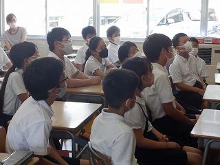 校長講話の後、生徒指導からは夏休みの過ごし方について、情報担当からは夏休み中のクロームブックの使い方について話がありました。きまりを守って、楽しく安全に過ごしてほしいですね。