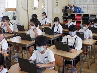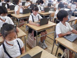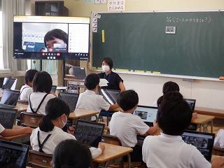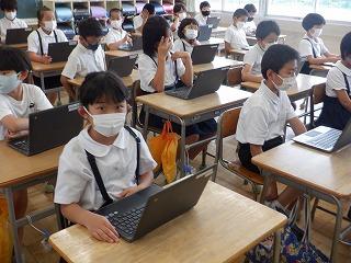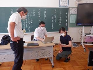 7月19日(火)3年2組では、ミートの確認をしていました。コロナ感染が再拡大していることや夏休みに向けての対応です。学びを止めないためにも、ICTを活用していきたいですね。