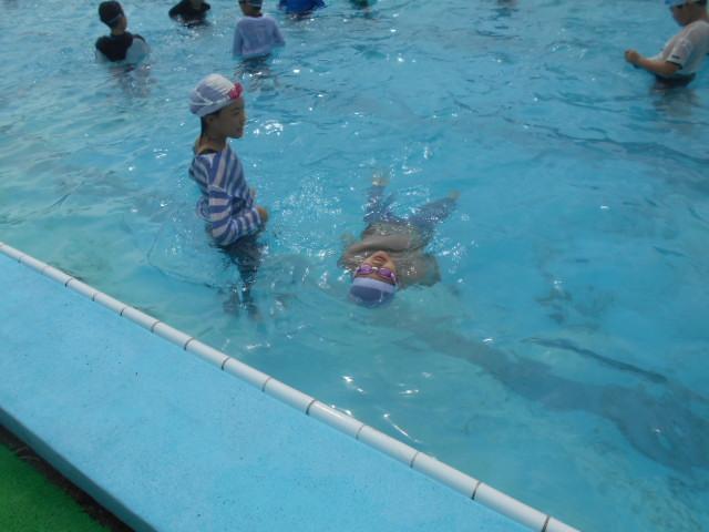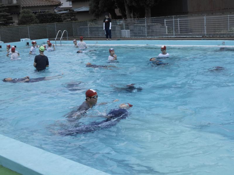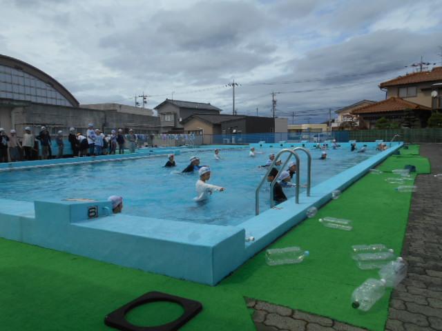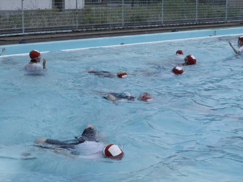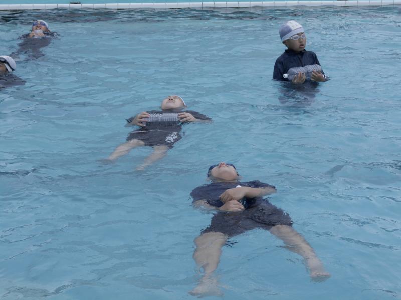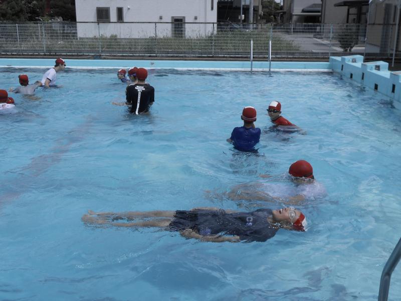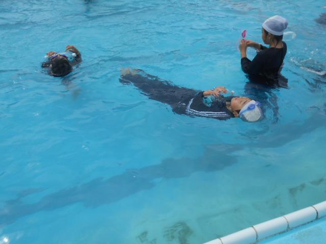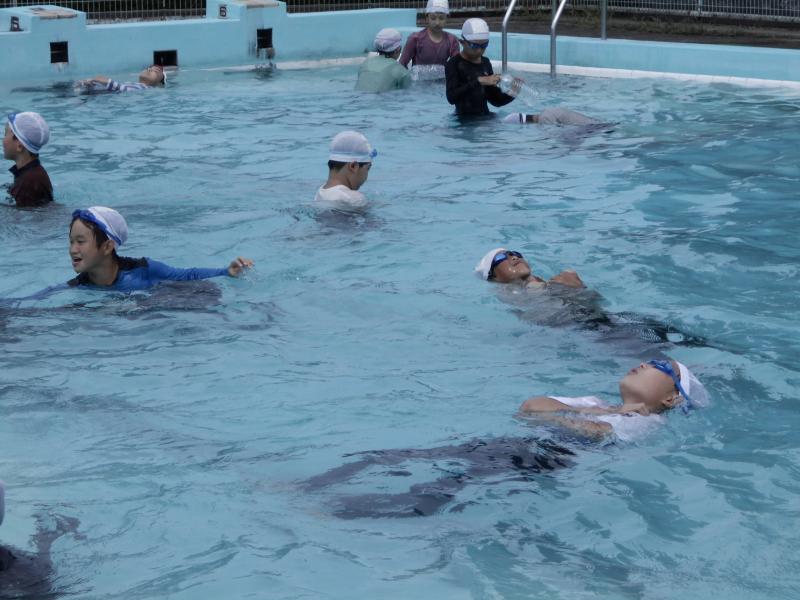子ども達は、水の重さに動きづらさを感じ、もし溺れた場合にはどんな行動をすればいいのかを考えながら、歩いたり泳いだりしてしていました。むやみに泳いでも、体力を消耗するだけなので、「慌てずに、浮いて待つ!」という合言葉を確認して、ペットボトルを用いて浮く練習もしました。着衣泳は、命を守るための大切な行動です。水の事故に合わず、安全な夏休みを過ごしてくださいね。
