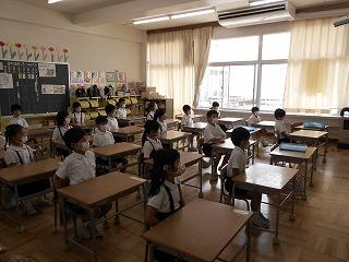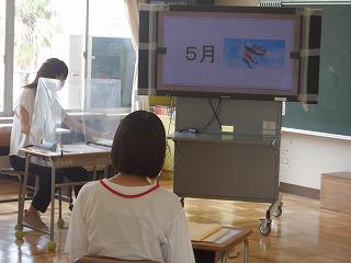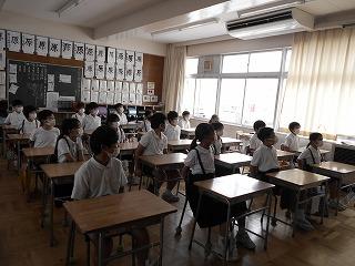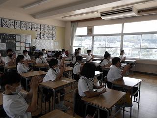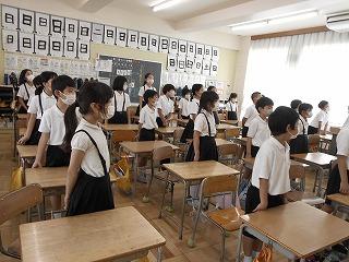 初めに、全員よい姿勢で校歌を歌いました。大きな声を出せませんが、心をこめて歌いました。