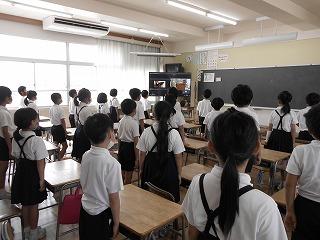 学校長からは、夏休み中に終戦記念日を迎えることから、今年も「平和」について話した後、夏休みを楽しく安全に過ごすために「考動力」を生かして生活することを話しました。どの学年の子ども達も、背筋を伸ばして聞いてくれているのが、写真からも伝わります。