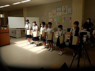 7月20日(水)終業式の後に、離任式を行いました。指導していただいた2人の先生に、代表児童がお礼の言葉を伝えました。