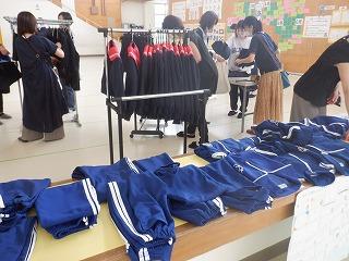 たくさんの保護者の方から制服や体操服などをご寄附いただいたおかげで、7月21日の通知表渡しの日に合わせ、3年ぶりにPTA家庭教育部主催のスクールリサイクルを行うことができました。ご協力いただきました皆様、ありがとうございました。