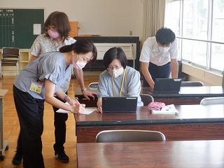 7月22日(金)金沢大学の加藤隆弘准教授を講師にお迎えして、教員のGIGA研修会を実施しました。本校の研究課題である、ICTを効果的に活用した見取り法とその見取りを授業で生かす指導の在り方についての講義を受けました。教員は、2学期の授業に生かそうと、クロームブックでの実践を含め、真剣な表情で受講していました。