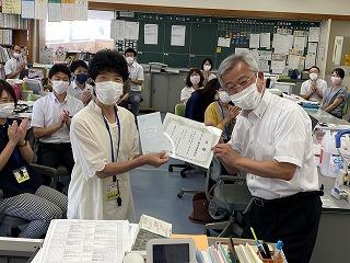 7月21日(木)1学期の通知表渡しを行いました。お忙しい中、たくさんの保護者の方が都合を付けて来校してくださいました。ありがとうございます。コロナ感染が拡大しているので、どのクラスも感染防止対策をしながら熱心に担任と懇談を進めていました。共有した1学期の頑張りやよさを生かし、課題については夏休み中に克服し、2学期のスタートに繋げてほしいと思います。