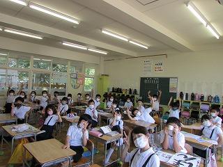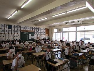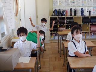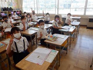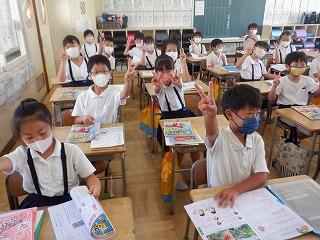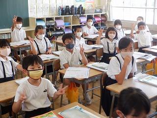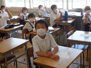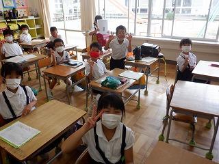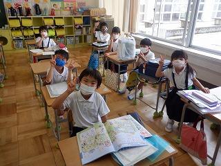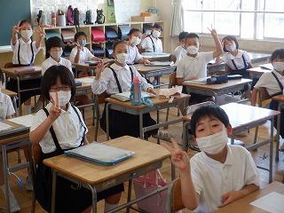 8月23日(火)今日は、2・4・5・6年生の学年登校日でした。どの学年の子も、一生懸命頑張った宿題を持って、元気に登校しました。短い時間でしたが、久し振りに会う友達と一緒に、楽しく過ごしていました。