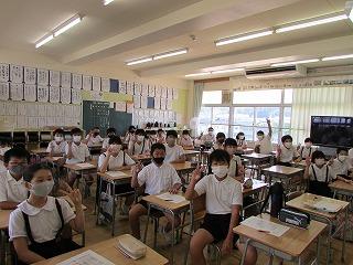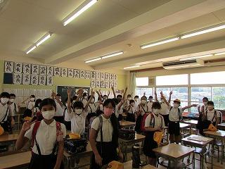 8月22日(月)今日は、3年生の学年登校日。久しぶりにクラスみんなで集まり、この笑顔!朝のあいさつもばっちりで、楽しく夏休みを過ごしているようで安心しました。