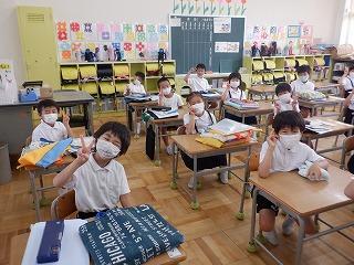 8月24日(水)今日は、1年生の学年登校日。初めての夏休みを過ごした1年生。頑張って仕上げた宿題を持って、元気に登校できました!