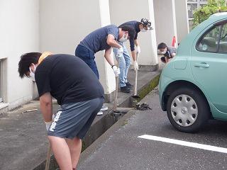 校舎周りでは、側溝の泥上げに取り組み、3年越しの泥をかき上げ、きれいにしていただきました。